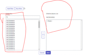 From the collection, we have to select the incidents A and add them to the child incident list.