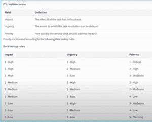 - Priority is generated from urgency and impact according to the following table.